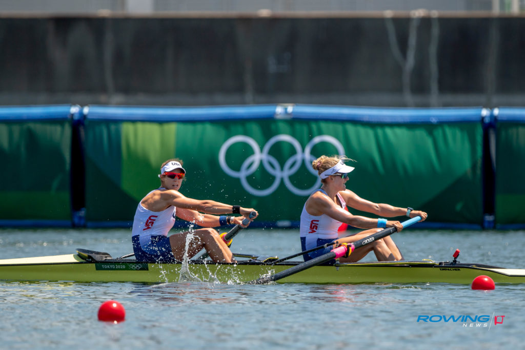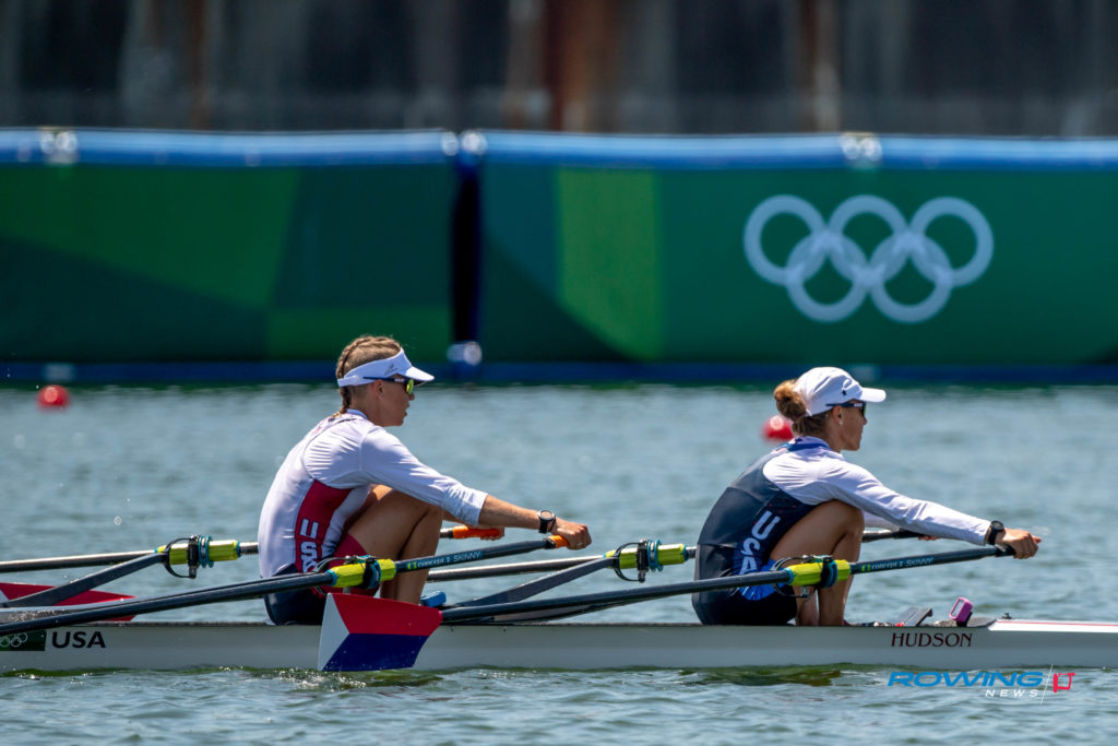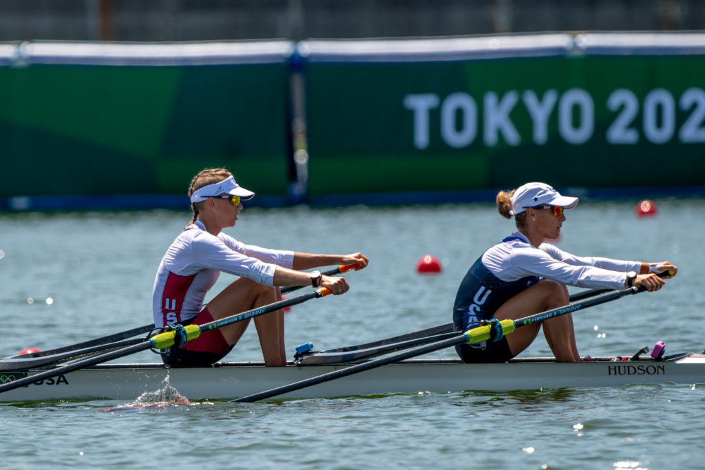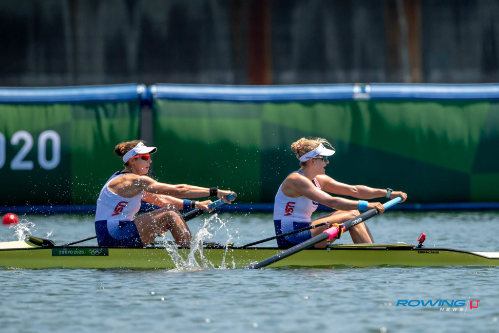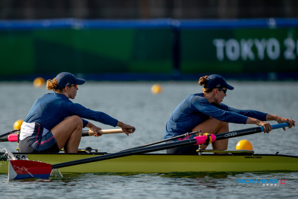 While the heats begin Friday morning, the first to race in the regatta were the team alternates. Racing in the double and pair spare race were women’s alternates Vicky Opitz and Molly Bruggeman. They finished second.
