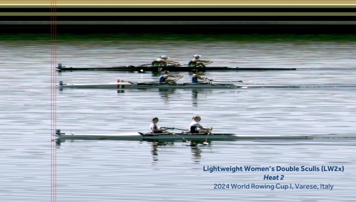 In a barnburner of a race, the second heat of the lightweight women’s double at the World Rowing Cup I featured the top three finishers — Canada, Australia, and Italy — all crossing the line within .04 seconds of each other. The Italian crew, notably the country’s second entry in the event, made up deficit of more than three seconds at the 500m mark. Brutally, they were relegated to tomorrow’s repechage, with only the top two crews advancing directly to the finals. The duo, Stefania Buttignon and Silvia Crosio, competed in last year’s World Championships in the openweight double.