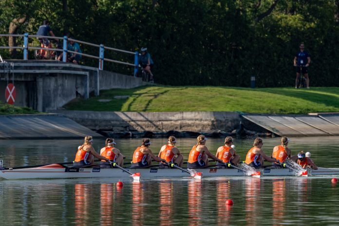 It was a joyous rip-roaring row from The Netherlands eight, who rarely dropped below 42. They won by clear water. The fact they moved so fluidly and easily enabled them to maintain their high rating—beautiful catches, a powerful middle, and an easy, clean finish. And soon we were in for double Dutch delight.