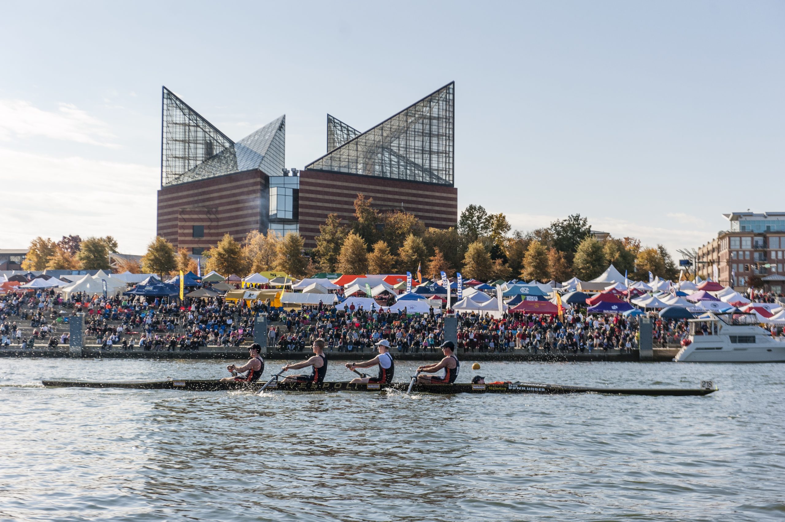This year’s iteration has more than 2,000 entries making it the second-largest fall regatta in America—coming in second behind the Head of the Charles. Events span the entire offering of rowing competition including junior, masters, adaptive, collegiate, and open racing.