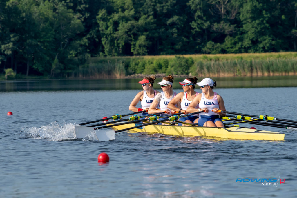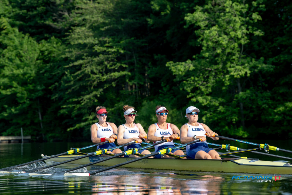 The U.S. women’s national team made its debut Tuesday during a media availability on Mercer Lake, West Windsor, N.J., wearing the new Olympic unis and rowing in their official lineups. Here is a gallery of the three training center crews, plus the pair and single in action.