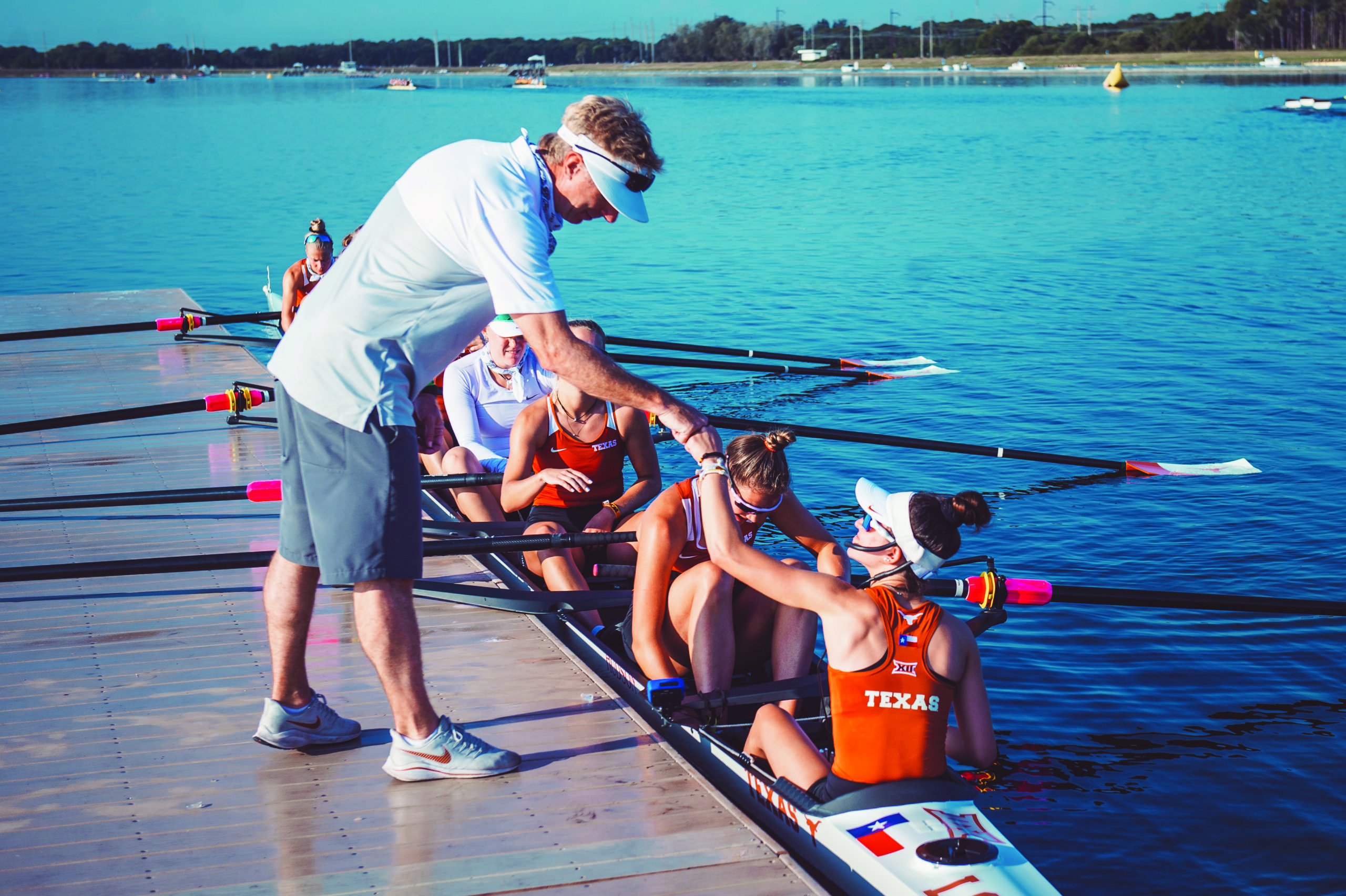 Despite his successes at the highest level of American collegiate rowing, O’Neill has lost neither his appreciation for the value of rowing (“I believe the lessons you learn rowing can make the world a better place, and that’s what really matters”) nor his sense of fun— at the 2015 NCAA championships, his Texas crews began showing up at the podium wearing cowboy boots. At the 2018 NCAAs, they raced different hulls in the heats and finals—controversially and successfully—which is something men’s crews have done for decades. O’Neill also sets the standard for productive interaction with the media and public. He returns every phone call and inquiry and recently appeared on Alex DelSordo’s pioneering Finishline Live (check it out on YouTube), helping rowers understand what to expect from rowing on the Division I level.