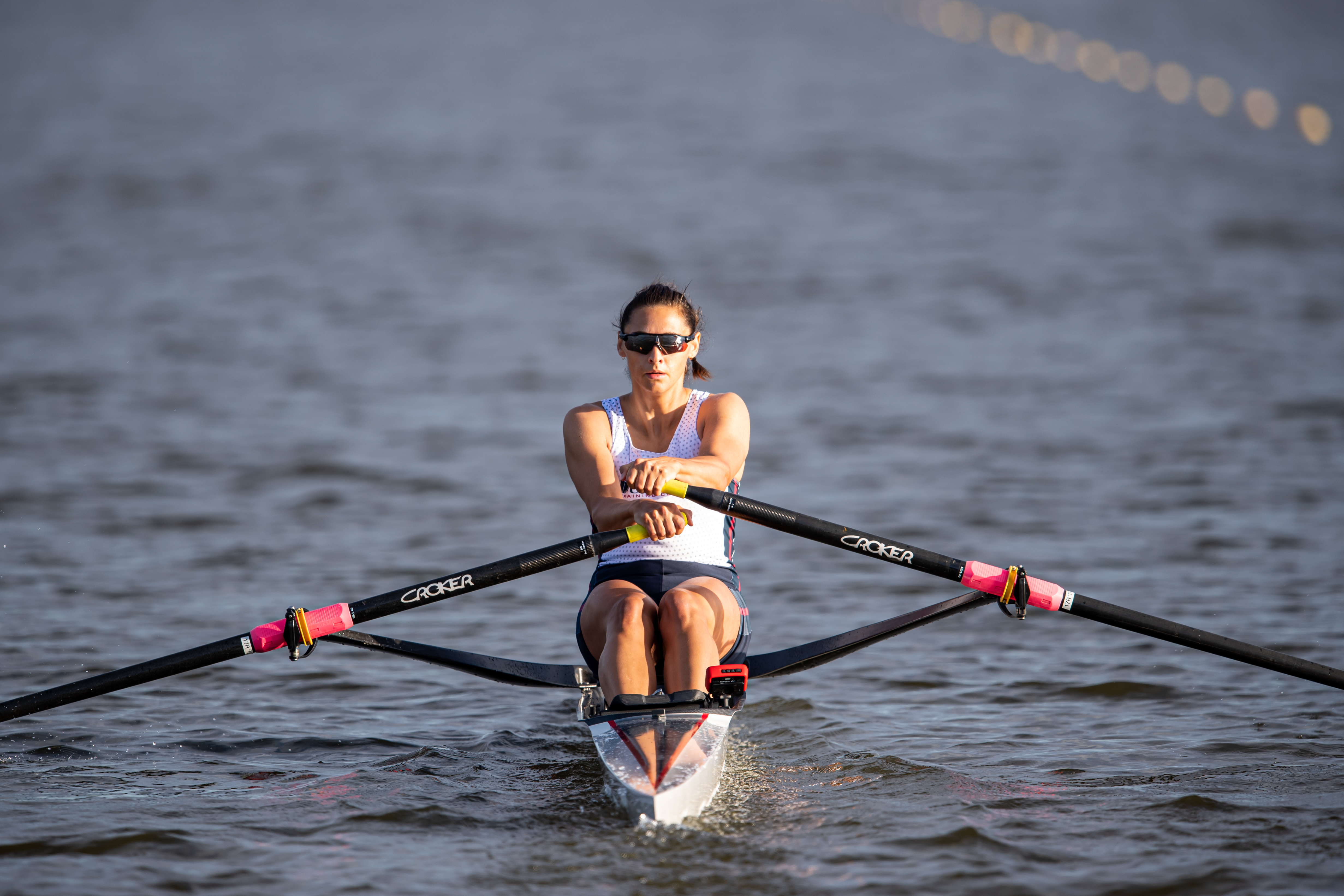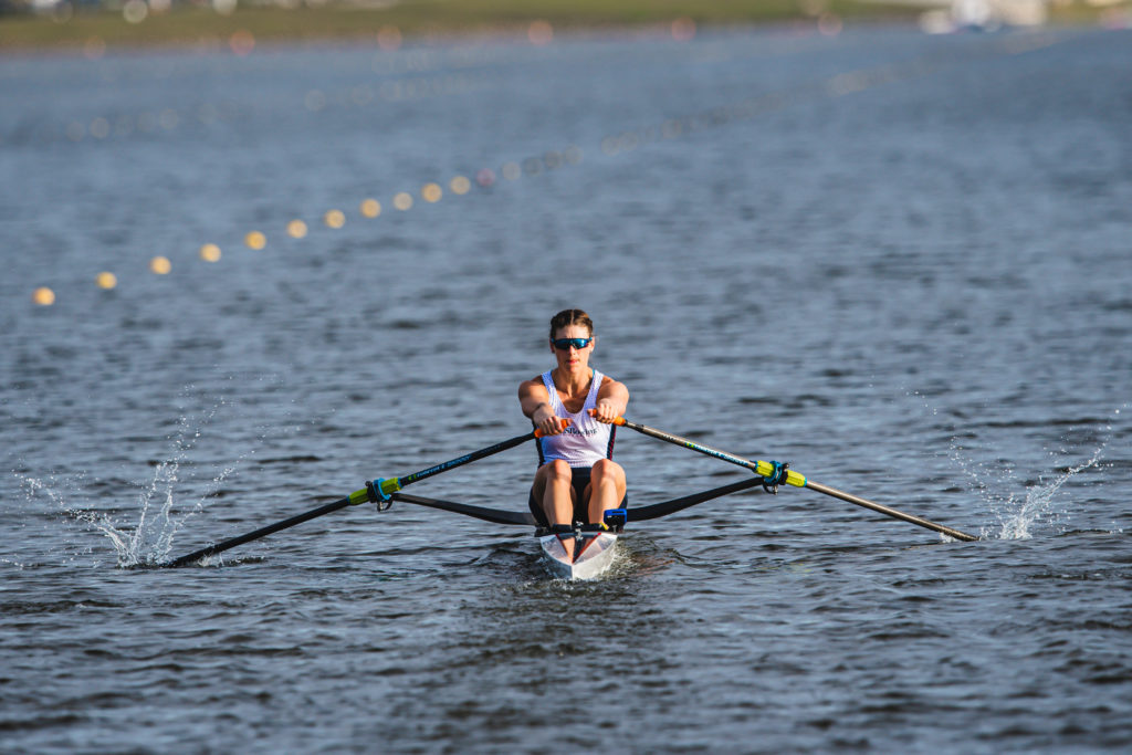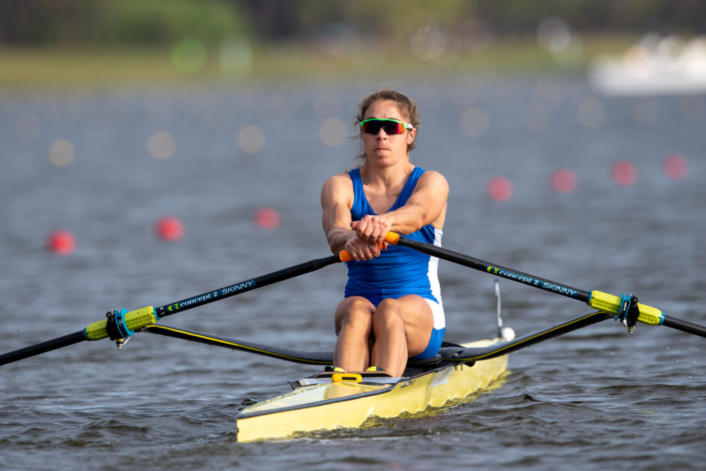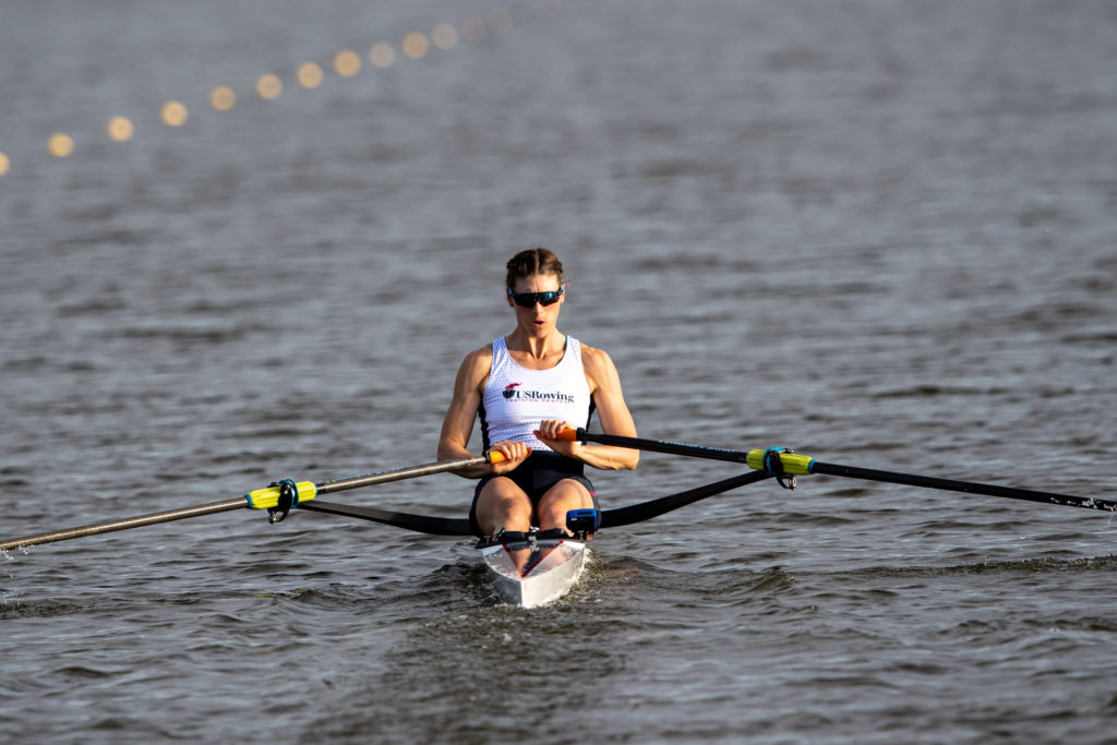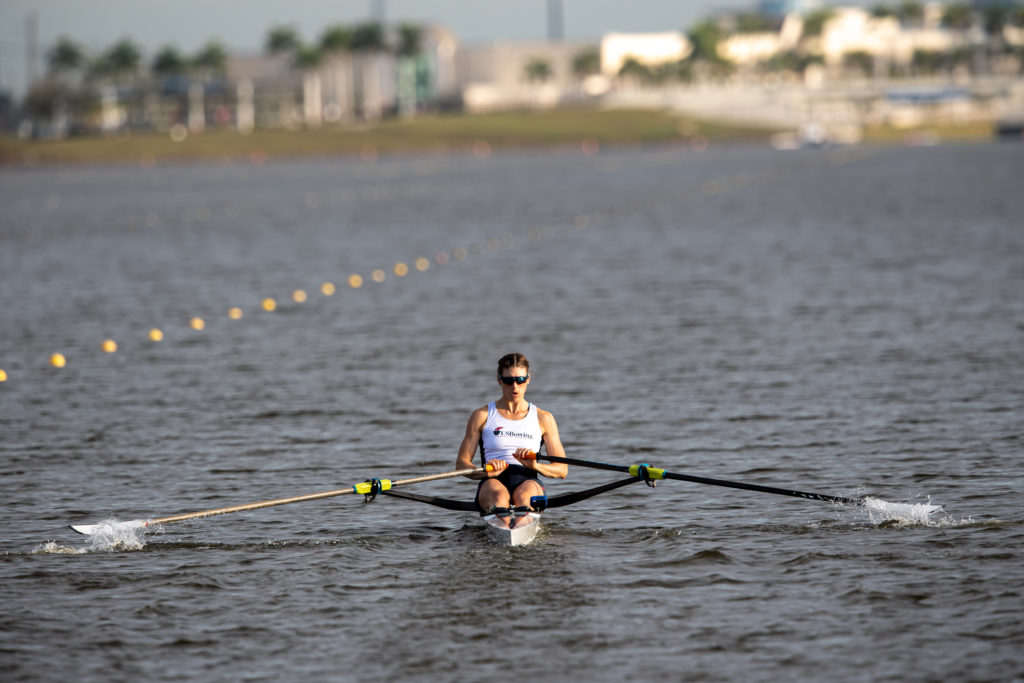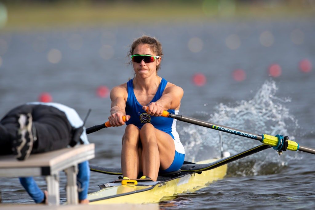 “It’s like riding a bike, you don’t forget,” she said about getting settled. “It’s exciting just to get back into the race routine. There was a pretty consistent headwind on the course, but I raced the first half of the race and then had a comfortable enough lead to row steadily to the finish,” she said.