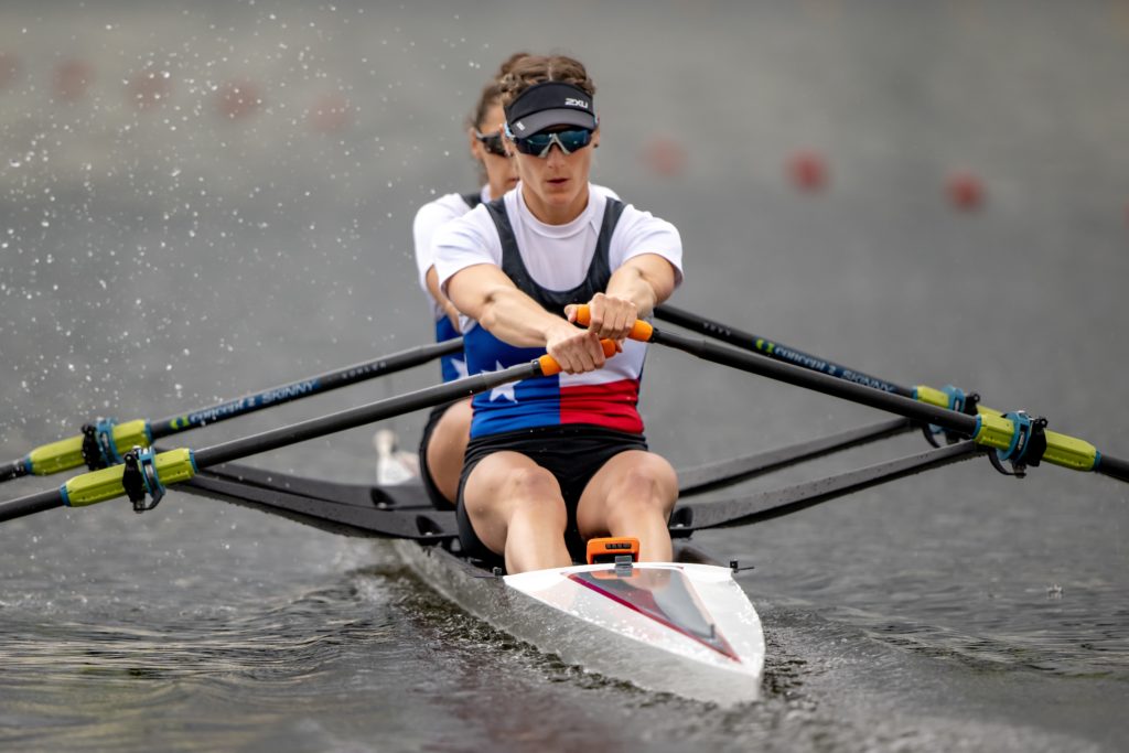 “This is Sophia and my first-time racing in a double together, doing side by side. We’ve put in a lot of training the past month in Austin with our training partners, the heavy men, and the lightweight men,” Kohler said.