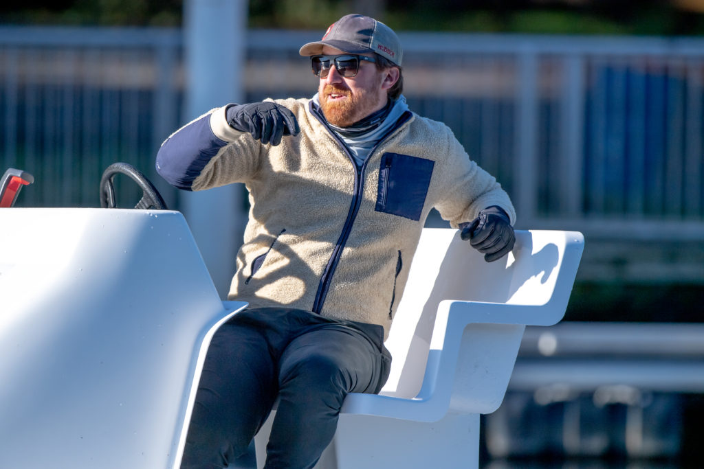 The vast majority of the double’s training videos that Bralić played at the conference showed perfectly flat water. These balance exercises build confidence in the crew to produce the highest speeds and to attack aggressively in all water conditions.