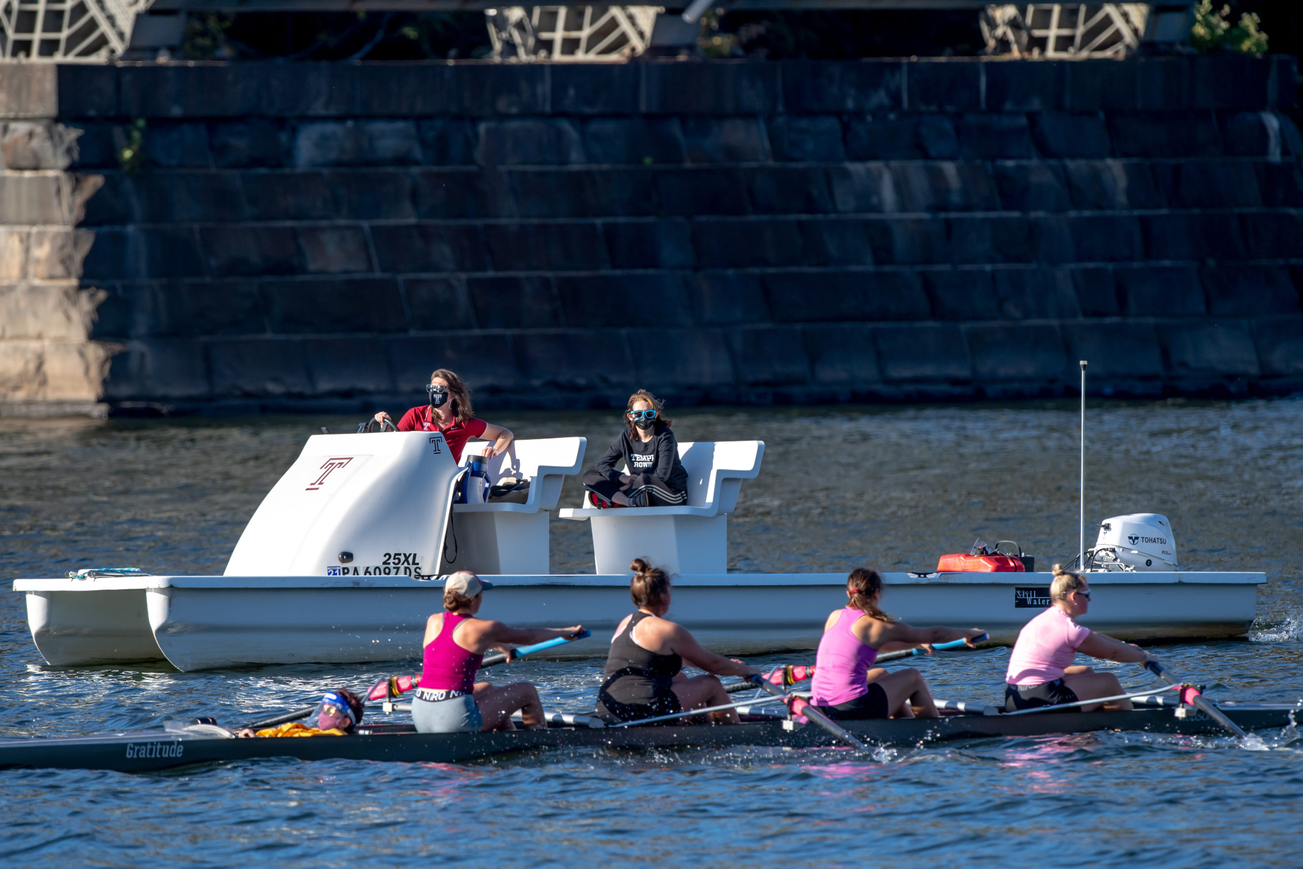 With Covid restrictions eased in Philadelphia, team boats have returned to the water on the Schuylkill River. Here are some photos of crews training October 15, including Temple University women and St. Joseph’s Prep.
