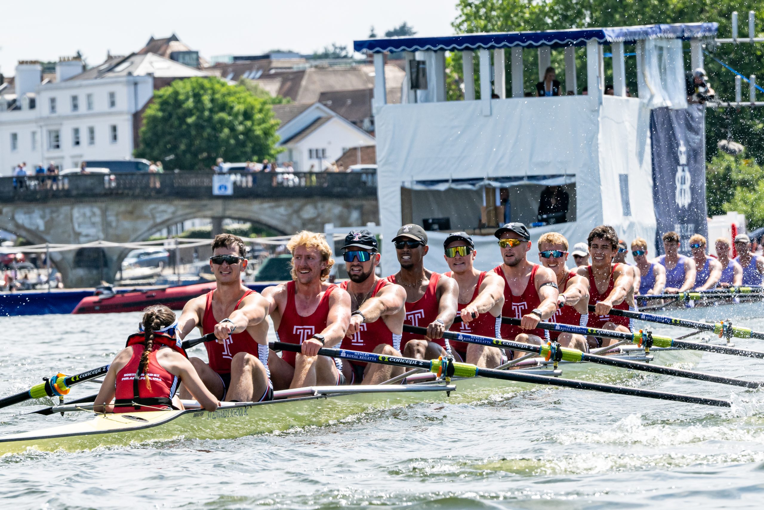 They could see folks in Temple colors celebrating on the banks of the Cooper, but that’s not confirmation. Crosby, the coxswain, wanted to tell them they’d won, but she had stayed focused on her own boat until after the line. She didn’t want to say anything to her rowers until she knew for sure.