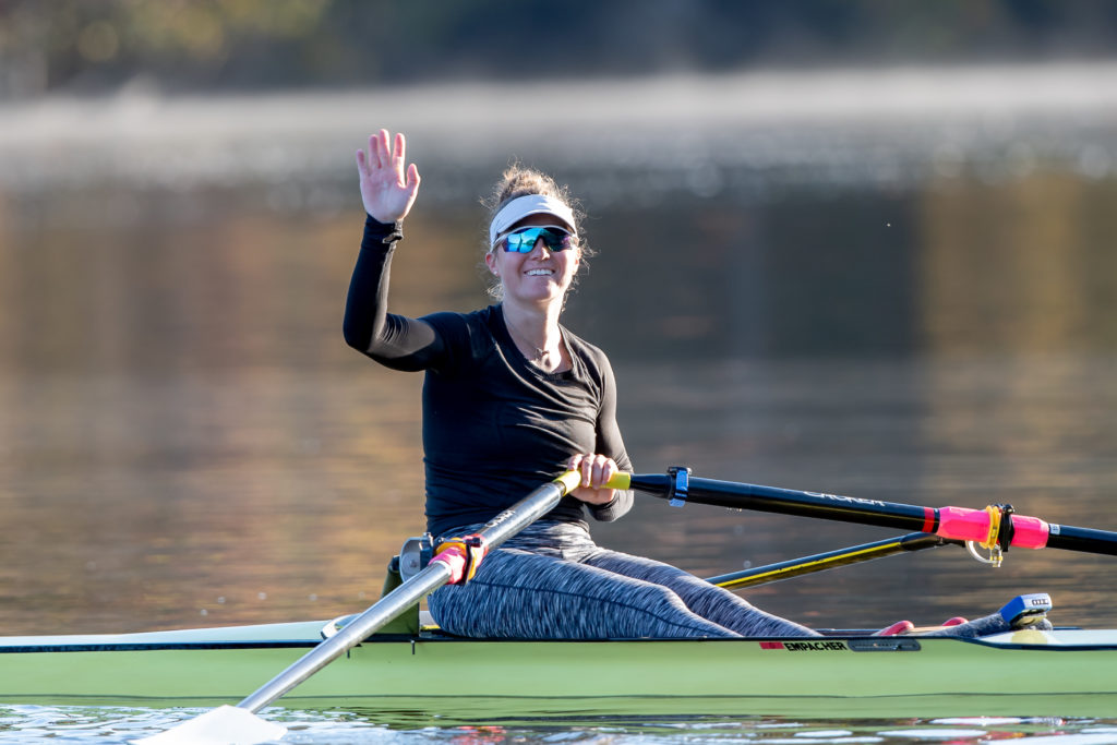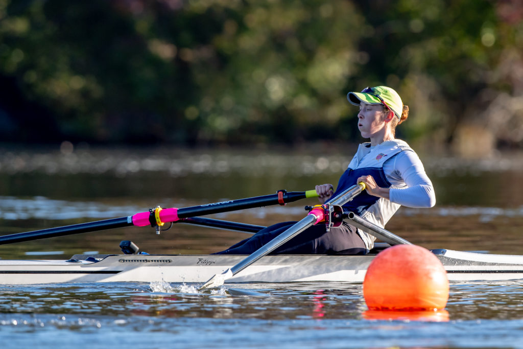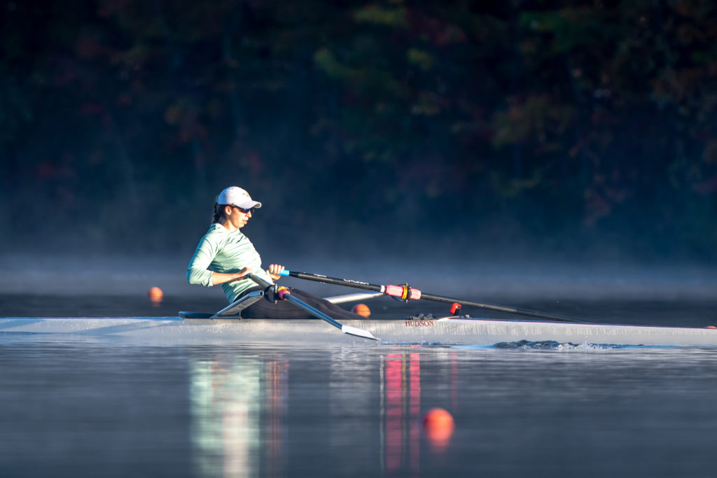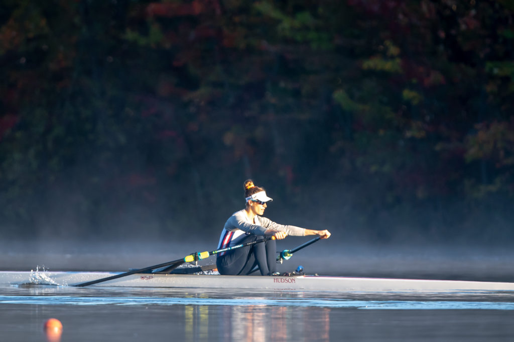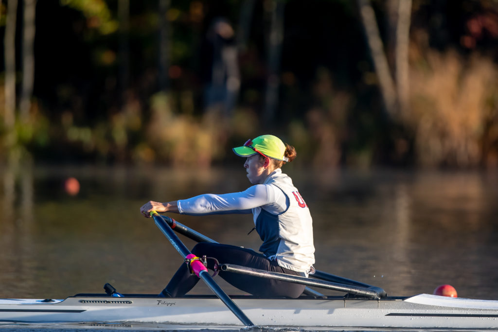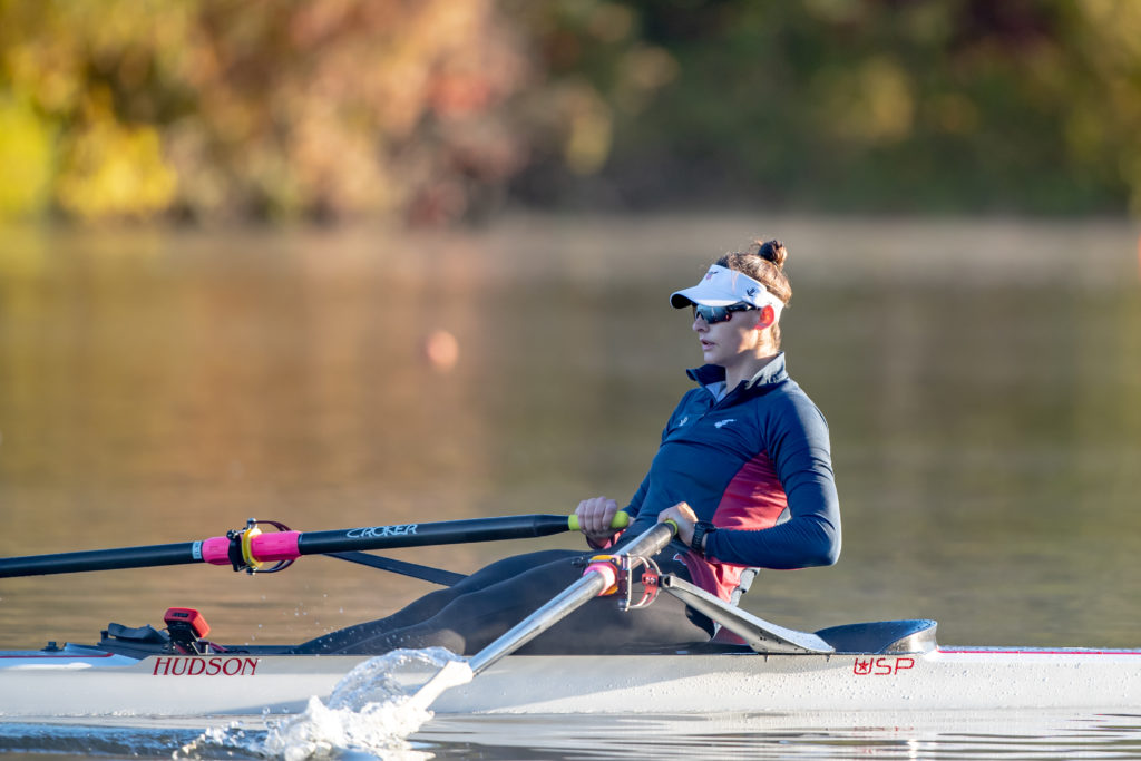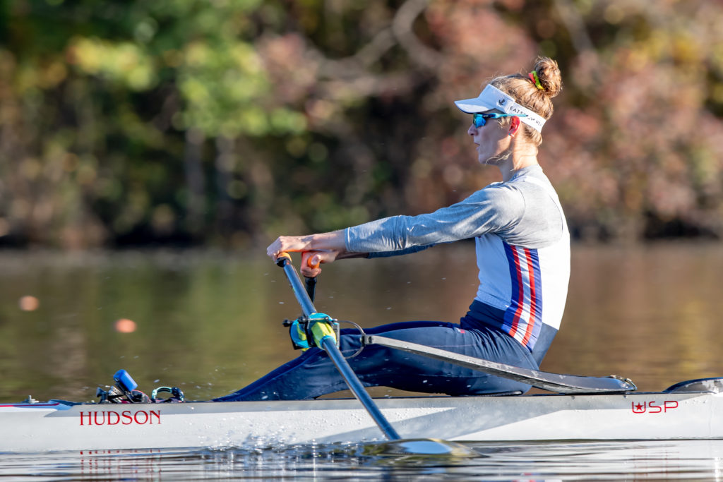 Racing and rowing in team boats is still on hold through, but the United States women’s training center is back at work and training in singles on Mercer Lake in West Windsor, N.J. and on Wednesday morning several of the team was on the water enjoying a colorful and perfect for sculling fall morning.