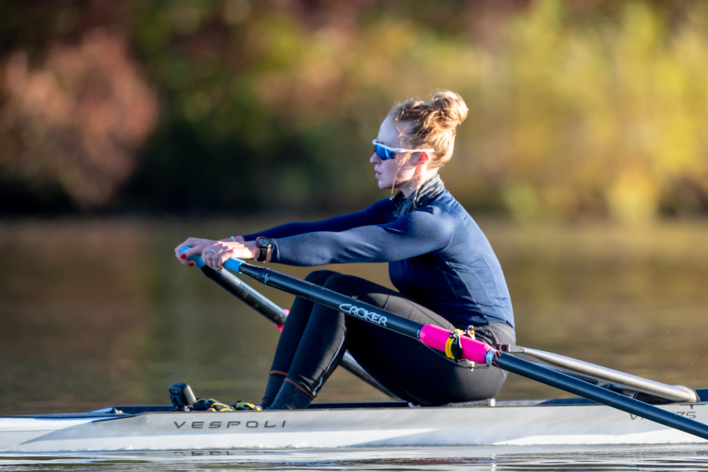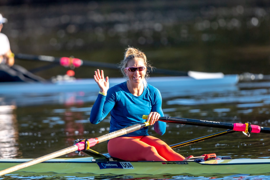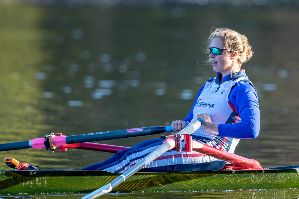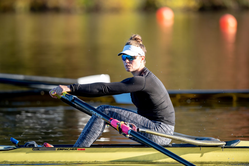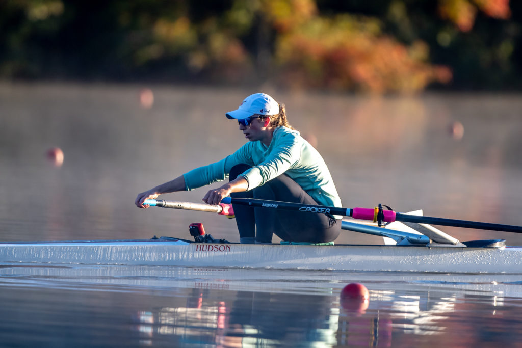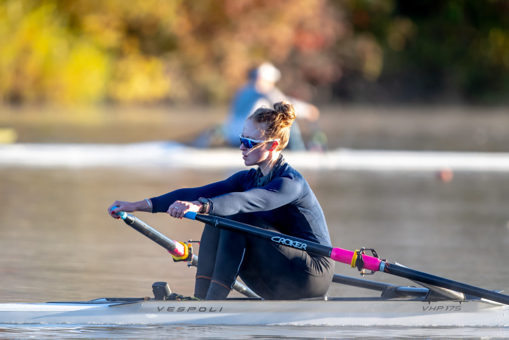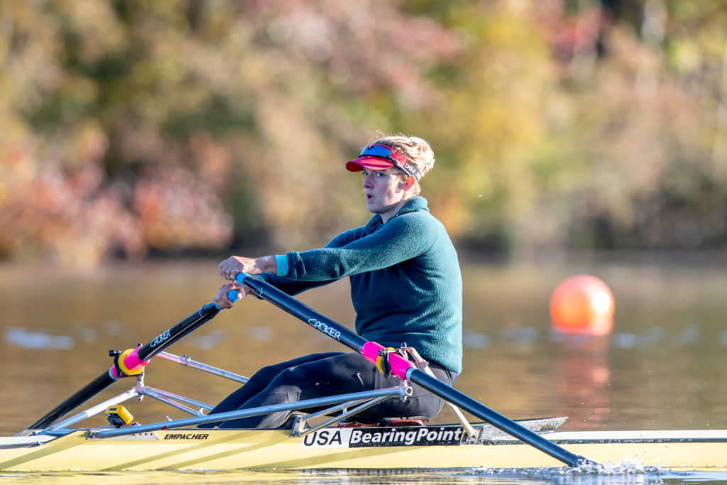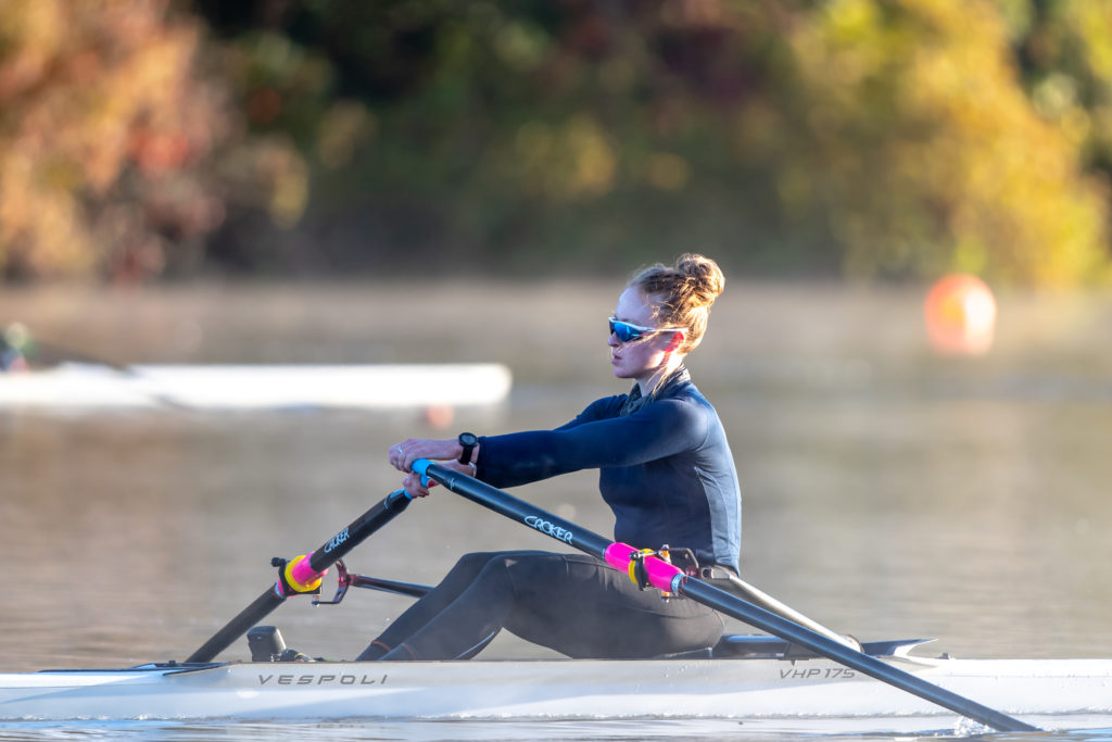Racing and rowing in team boats is still on hold through, but the United States women’s training center is back at work and training in singles on Mercer Lake in West Windsor, N.J. and on Wednesday morning several of the team was on the water enjoying a colorful and perfect for sculling fall morning.