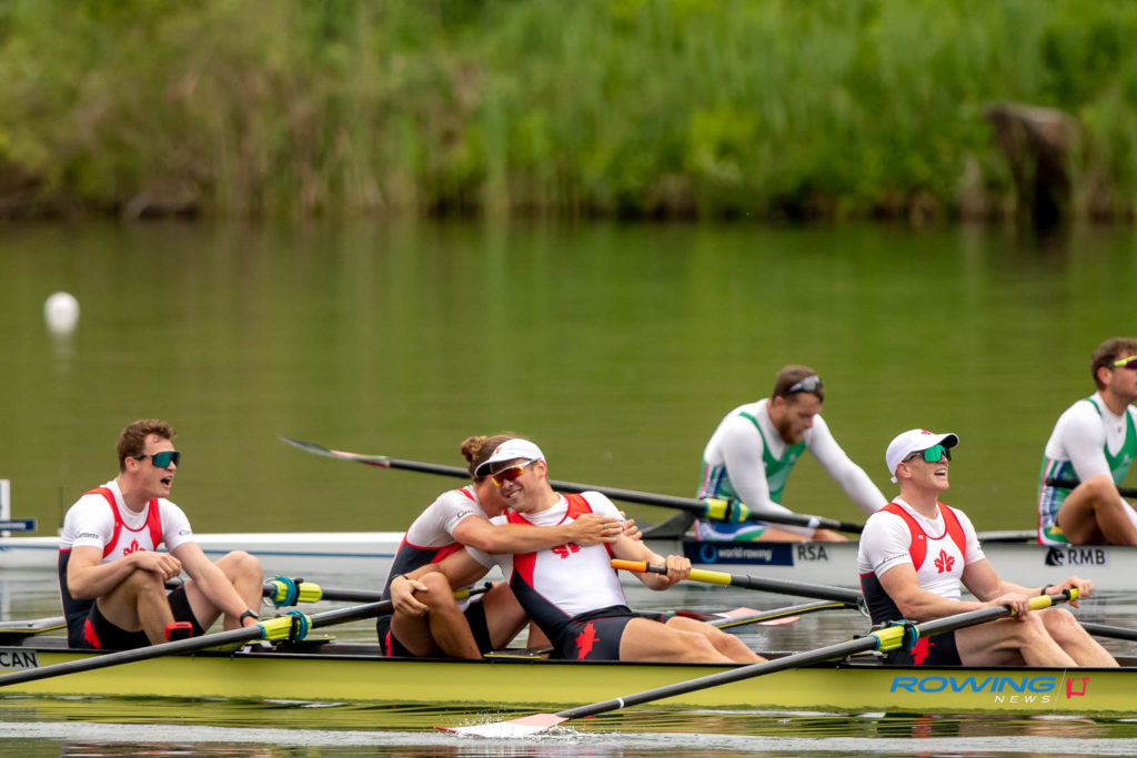 Jones was one of three Canadian men’s crews that earned their place in the postponed 2020 Games. As he crossed the line, his teammates from the men’s four rose from their seats in the medals waiting area and enthusiastically called to Jones to join them on the dock as he sprinted to the finish and powered through Poland’s Natan Wegrzycki-Szymczyk, a favorite to place in the top two.